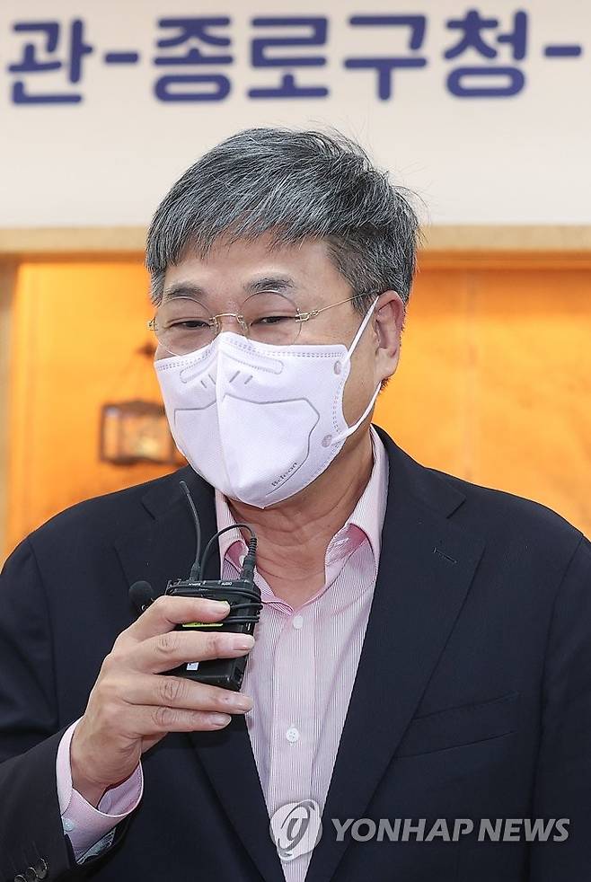 (서울=연합뉴스) 신현우 기자 = 정문헌 종로구청장이 5일 오전 서울 국립고궁박물관에서 열린 국립고궁박물관-종로구청-연합뉴스 업무협약식에서 발언하고 있다. 2022.10.5