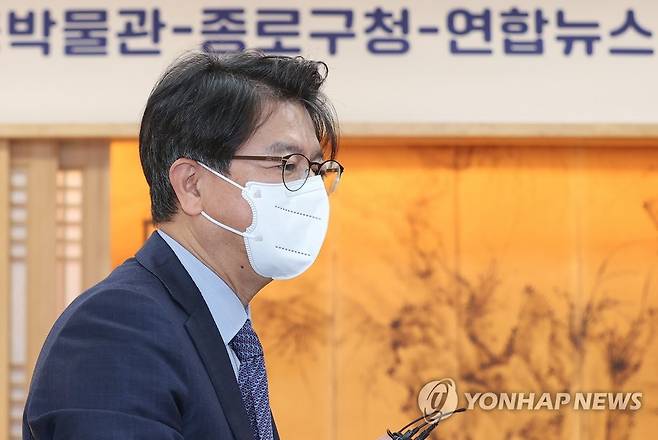 (서울=연합뉴스) 신현우 기자 = 성기홍 연합뉴스 사장이 5일 오전 서울 국립고궁박물관에서 열린 국립고궁박물관-종로구청-연합뉴스 업무협약식에서 발언하고 있다. 2022.10.5