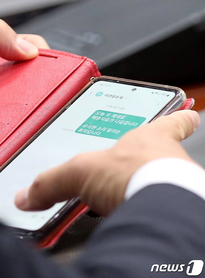유 사무총장은 이관섭 수석에게 '오늘 또 제대로 해명자료가 나갈겁니다. 무식한 소리 말라는 취지입니다'라고 보냈다. 2022.10.5/뉴스1