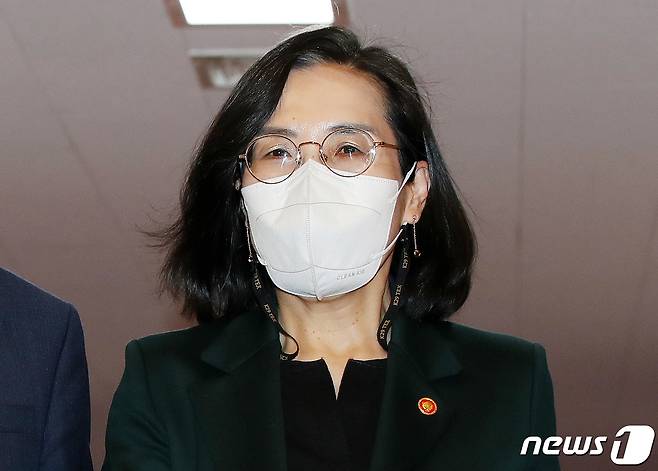(서울=뉴스1) 박지혜 기자 = 김현숙 여성가족부 장관이 5일 서울 종로구 정부서울청사에서 열린 국무회의에 입장하고 있다.