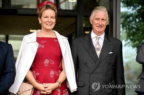 epa10224184 King Philippe (R) and Queen Mathilde (L) of Belgium pose during their visit at the headquarters of the German biotechnology company BioNTech SE in Mainz, Germany, 05 October 2022. The Belgian royals are on a two-day visit to the Rhineland-Palatinate state. EPA/SASCHA STEINBACH