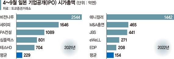 일본 증권가에서는 미국, 유럽의 금리 인상과 러-우크라 전쟁이 전체 IPO 시장을 위축시킨 것으로 분석했다.
