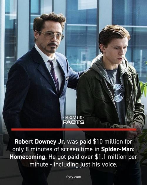 무비팩츠는 4일(현지시간) “로다주는 ‘스파이더맨:홈커밍’에 8분만 출연하고 1,000만 달러(약 141억)를 받았다”고 밝혔다.