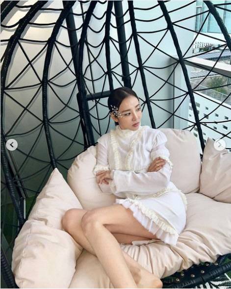 사진 속에는 쇼파 위에 앉아 포즈를 취한 산다라박의 모습. 이때 짧은 스커트 때문에 과감하게 드러낸 허벅지가 눈길을 끌었다.