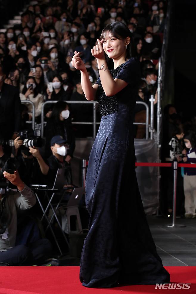 [부산=뉴시스] 박진희 기자 = 배우 김유정이 5일 부산 해운대구 영화의전당에서 열린 제27회 부산국제영화제 개막식 레드카펫 행사에 참석하고 있다. 2022.10.05. pak7130@newsis.com