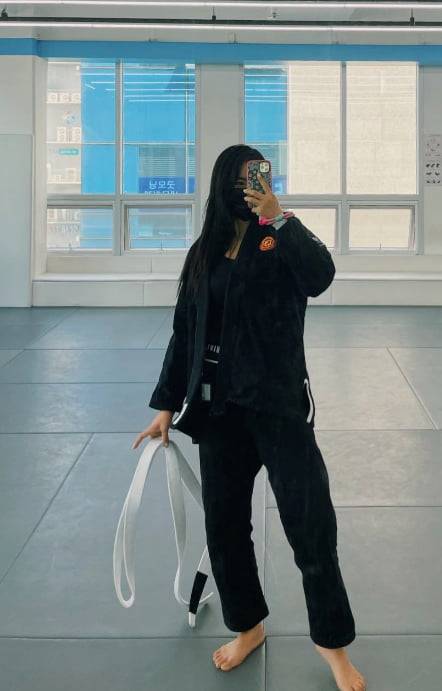 공개된 사진 속 전다빈은 검은색 도복에 흰색 띠를 들고 탄탄한 바디라인을 뽐냈다.