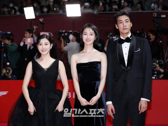 배우 김수연, 강해림, 김영광(왼쪽부터)이 5일 오후 부산 해운대구 영화의전당 중극장에서 진행된 제27회 부산국제영화제 개막식 레드카펫 행사에 참석해 포즈를 취하고 있다.