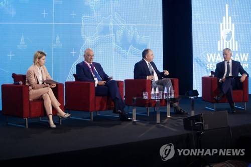 epa10224780 (L-R) Ukrainian Deputy Prime Minister for European Affairs Olha Stefanishyna, Greek Foreign Minister Nikos Dendias, Polish Minister for European Union Affairs Konrad Szymanski and Deutsche Welle journalist Terry Martin during the Warsaw Security Forum 2022 at the DoubleTree by Hilton hotel in Warsaw, Poland, 05 October 2022. The Warsaw Security Forum is one of the leading European security conferences devoted to transatlantic cooperation and focused on elaborating shared responses to common challenges, with an emphasis on the security of Central and Eastern Europe. EPA/ALBERT ZAWADA POLAND OUT