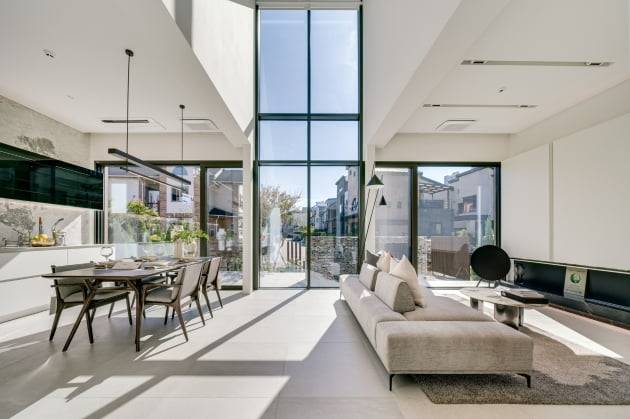 유럽에서 검증된 프리패브 공법과 국내 아파트 브랜드 자이의 디자인이 결합된 한국형 고급 단독주택이다.