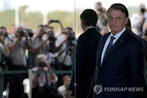Brazilian President Jair Bolsonaro, who is running for reelection, arrives to meet with political allies ahead of the second round of presidential elections at the presidential residence, Alvorada palace, in Brasilia, Brazil, Wednesday, Oct. 5, 2022. The run-off is set for Oct. 30. (AP Photo/Eraldo Peres)