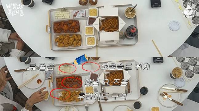 이후 이들은 치킨 반반과 감자튀김, 코울슬로 두 개를 시켜 나눠 먹었다. 네 명에서 먹기에 턱 없이 부족한 양임에도 처음 시켰을 때와 별반 차이 없는 음식 상태에 모두에게 놀라움을 안겼다.