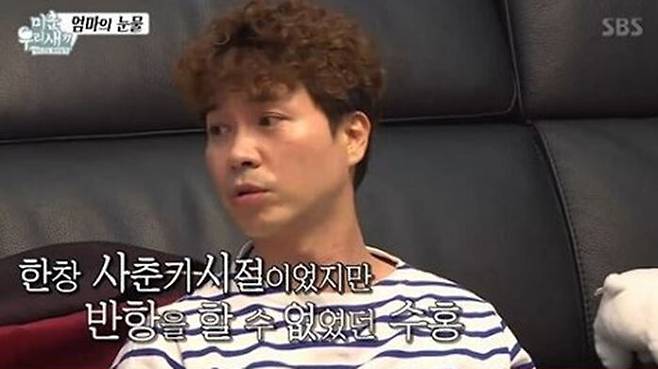 박수홍은 부친의 사업 실패 이후 어려웠던 가정 환경을 언급하며 "당시 어머니가 미용실을 하셨는데 손님이 들어오실까 봐 밥을 물에 말아 드시고 계셨다. 당시 사춘기였는데 그 모습을 보고 어떻게 반항을 하겠나. 꿈도 못 꿨다"고 말했습니다.