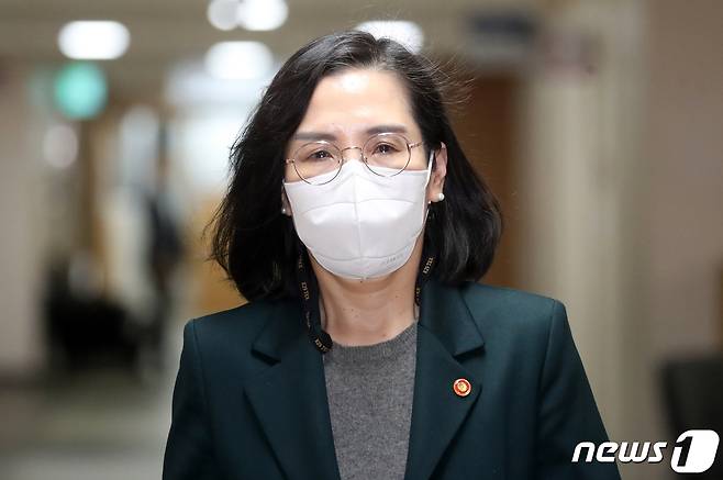 (서울=뉴스1) 김명섭 기자 = 김현숙 여성가족부 장관이 6일 서울 종로구 세종대로 정부서울청사에서 학교 안팎 청소년 지원 강화 대책 브리핑을 하기 위해 이동하고 있다. 2022.10.6/뉴스1