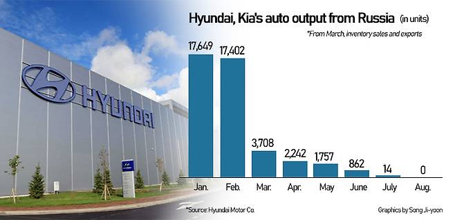 Hyundai Motor and Kia plugged off their plant in Russia in March but have yet to decide on an exit plan. No car has been produced from Hyundai Motor’s Russian factory since the war began early this year, but local dealers have continued business with inventory sales.