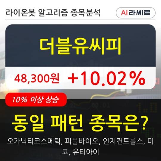 이 시각 거래소에서 더블유씨피 이외에도 오가닉티코스메틱(11.54%), 피플바이오(19.79%), 인지컨트롤스(11.17%), 미코(23.02%), 유티아이(10.05%) 등이 상승세를 보이고 있다.