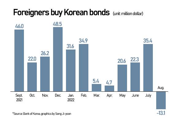It is the first net outflow in the Korean bond market since December 2020, according to the Bank of Korea’s report on Wednesday.