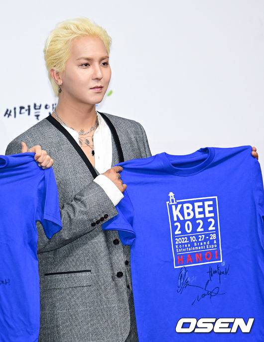 위너 송민호가 사인 티셔츠와 함께 기념촬영을 하고 있다. 2022.10.06 /ksl0919@osen.co.kr