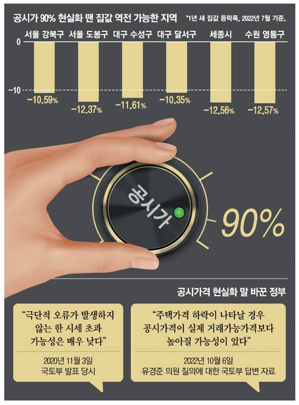 이날 국정감사장에서 관련 질의를 받은 원희룡 국토교통부 장관도 이 같은 견해에 동의했다. 원 장관은 공시가 현실화 계획에 문제가 많다는 유경준 국민의힘 의원의 지적에 "현실화율(90%)은 이상론적이고 정부만능적인 정책이었다고 생각한다"고 말했다.