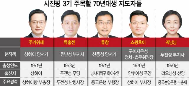 중국 지도자들이 10년 단위로 집권해 온 관례상 1953년생인 시 주석의 후계 그룹은 1960년대생인 '류링허우'로 예상됐다.
