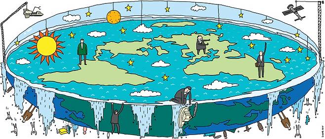 몇 해 전 지구가 평평하다고 믿는 분들과 진지하게 대화를 나눌 기회가 있었다. 어느 방송사에서 이분들 이야기를 취재하는 와중에 이분들이 과학자들과 직접 토론하고 싶다고 요청해 마련된 자리였다. 3 대 3으로 진행된 토론은 예상대로 평행선을 달리며 끝났다.