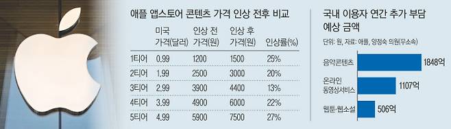 애플이 자사 애플리케이션(앱) 마켓인 ‘앱스토어’의 인앱결제 가격을 큰 폭으로 올리면서 콘텐츠 물가가 덩달아 오르고 있다.