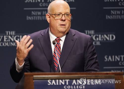 epa10226762 Maryland Governor Larry Hogan addresses an audience during the 'Politics and Eggs' forum at the New Hampshire Institute of Politics on the campus of St Anselm College in Manchester, New Hampshire, USA, 06 October 2022. EPA/CJ GUNTHER