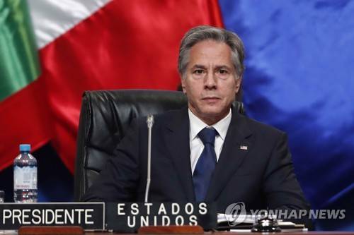 epa10226812 US Secretary of State Antony Blinken participates in the Ministerial Meeting of the Summit Implementation Review Group (SIRG) during the 52nd General Assembly of the Organization of American States (OAS) in Lima, Peru, 06 October 2022. EPA/PAOLO AGULAR
