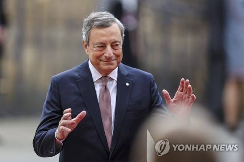 epa10226826 Italian Prime Minister Mario Draghi arrives during the Meeting of the European Political Community in Prague, Czech Republic, 06 October 2022. The first meeting of the European Political Community brings together leaders from across the continent including non EU members countries with the aims to foster political dialogue and cooperation and to strengthen the continent's security, stability and prosperity, a statement by the European Council reads. EPA/MARTIN DIVISEK