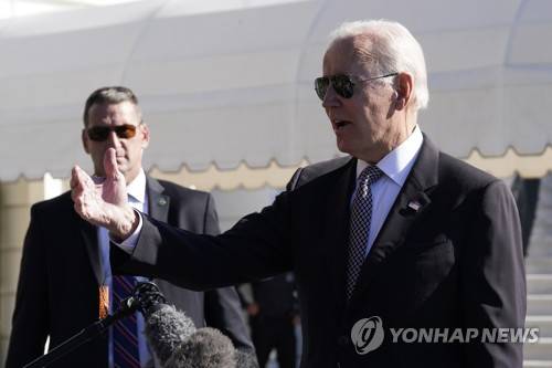 epa10226833 US President Joe Biden speaks to members of the media before his departure to Poughkeepsie, New York, at teh White House in Washington, DC, USA, 06 October 2022. EPA/Yuri Gripas/ABACA / POOL