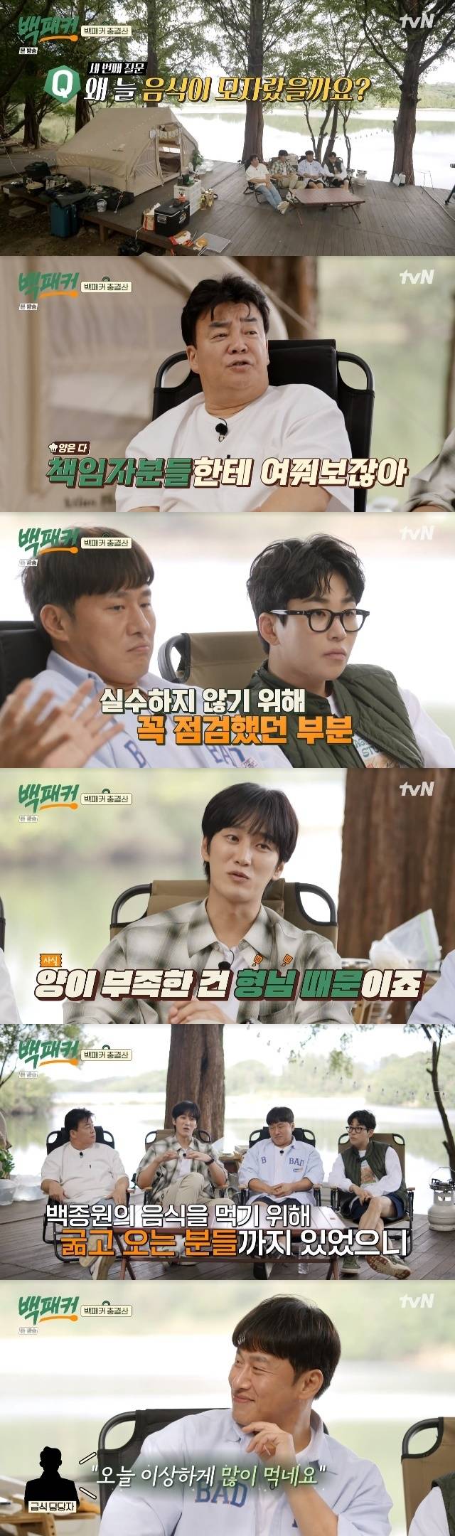 이날 제작진 측은 캠핑 장소에서 '백패커' 총결산을 진행하며 '왜 늘 음식이 모자랐는가'를 화두에 올렸다.