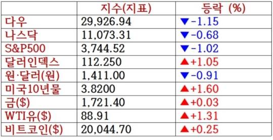 뉴욕증시, 연준 매파 발언·강달러에 일제 하락 '트위터 3.7%↓'..유가·비트코인 상승 [출근전 꼭 글로벌브리핑]