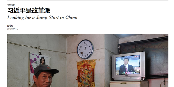시진핑 중국 국가 주석 집권 초기인 지난 2013년 1월 뉴욕타임스에 실린 칼럼의 제목입니다. 영문 제목은 'Looking for a Jump-Start in China'였지만 중국어 제목이 '시진핑은 개혁파'였습니다. 수십 년 동안 중국을 연구한 유명 칼럼니스트 니콜라스 크리스토프는 당시 시진핑 중국 공산당 총서기를 이렇게 평가했습니다. 이 칼럼이 나오고 두 달 뒤인 2013년 3월 시진핑 총서기는 공식적으로 중국 국가 주석의 자리를 맡게 됩니다. 니콜라스 크리스토프는 이 칼럼에서 '마오쩌둥의 시신이 천안문 광장에서 옮겨지고 노벨평화상 수상자인 류사오보가 석방될 것'이라고 예상했습니다. 마오쩌둥 전 주석의 시신은 영구보존 처리돼 천안문 광장에 자리한 마오 주석 기념당에 안치돼 있는데 '개혁파'인 시 주석 시대에는 장소를 옮길 거라는 전망이었습니다. 또 중국 민주화의 상징인 인권운동가 류사오보는 수감 중이라 노벨평화상 시상식에 참석하지도 못했는데, 시 주석 임기 동안에는 석방될 것이라 예상한 겁니다. 시 주석 시대의 중국에서는 정치, 경제 부문의 개혁이 가속화될 것이라고 평가했기 때문입니다.