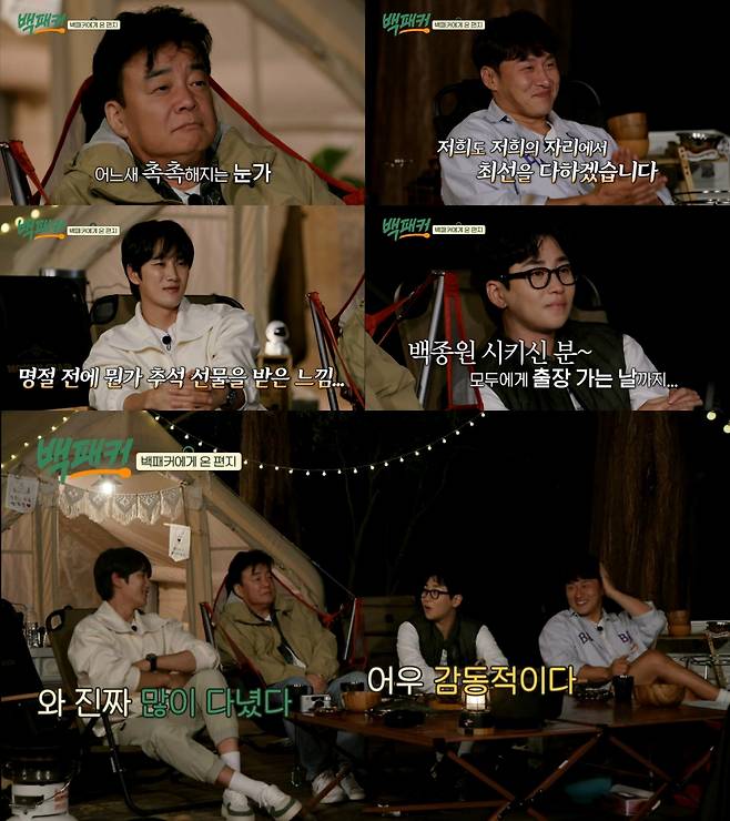 6일 방영된 ‘백패커’ 최종회(20회)에서는 ‘백패커’의 마지막 여정이 그려졌다. 이날 백패커들은 출장이 아닌 마지막 힐링 캠핑을 떠났다. 그간 '백패커'와 함께해준 소중한 인연들에게 온 감사의 영상 편지를 본 백패커들은 이내 눈물을 글썽였다.