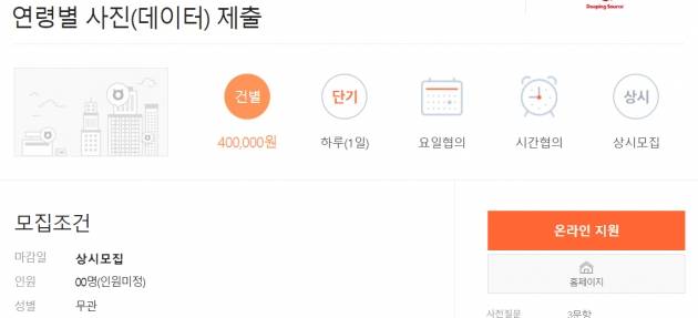 ‘당신의 얼굴 사진 70장을 제출하면 40만원을 지급합니다. 성별무관. 학력무관. 방문하지 않고 참여 가능.’