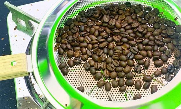 “생두 색깔이 갈색으로 변할 때까지 열심히 볶아주세요.”