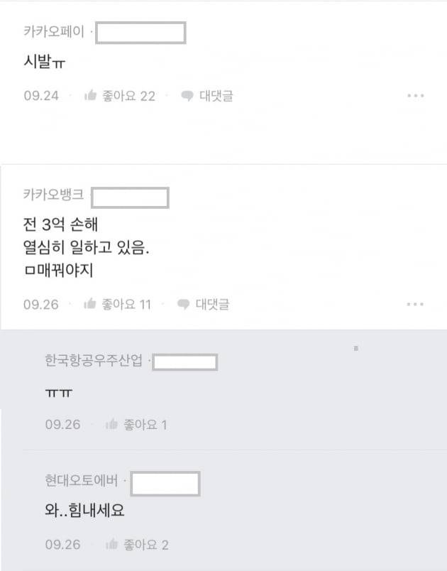 카카오페이 직원들도 인당 평균 3억9045만원을 넣었습니다. 이들이 보는 손실은 1억5000만원에 달합니다.
