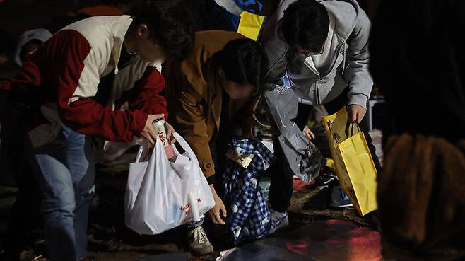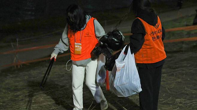 서울세계불꽃축제가 끝난 후 시민들 및 봉사자들이 쓰레기 등을 정리하고 있다.