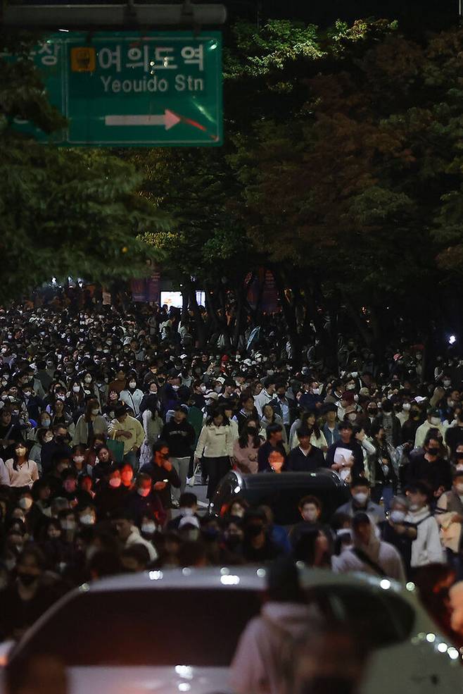 불꽃쇼가 끝나고 쏟아져 나오는 인파