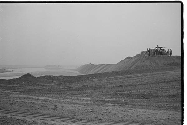 | ▲ 잠실 육속화 공사(1971) 잠실섬 남쪽의 물길을 막아 육지와 연결하는 육속화 공사가 진행되고 있다. |