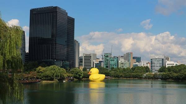 | ▲ 석촌호수와 러버덕 석촌호수는 한강의 물길을 막은 흔적이다. |