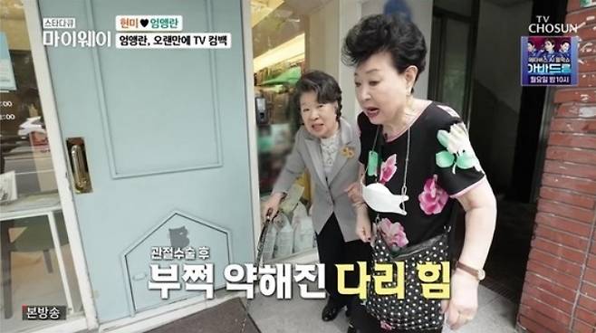 이날 방송에서 엄앵란은 지팡이를 짚고 등장했다. 엄앵란은 지난 2015년 유방암 투병에 이어 관절 수술까지 하며 거동이 불편해진 것으로 알려졌다.