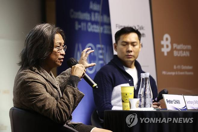 (부산=연합뉴스) 진연수 기자 = 영화 '첨밀밀'의 첸커신(陳可辛·진가신) 감독이 10일 부산 해운대구 벡스코 제2전시장에서 열린 제27회 부산국제영화제 아시아콘텐츠&필름마켓(ACFM) '필름메이커스 토크: 진가신과의 대화'에 참석해 발언을 하고 있다. 2022.10.10