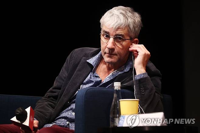 (부산=연합뉴스) 진연수 기자 = '노바디즈 히어로'로 갈라 섹션에 초청된 알랭 기로디 감독이 10일 오후 부산 해운대구 KNN 시어터에서 열린 제27회 부산국제영화제(BIFF) 마스터클래스에서 질문을 듣고 있다. 2022.10.10