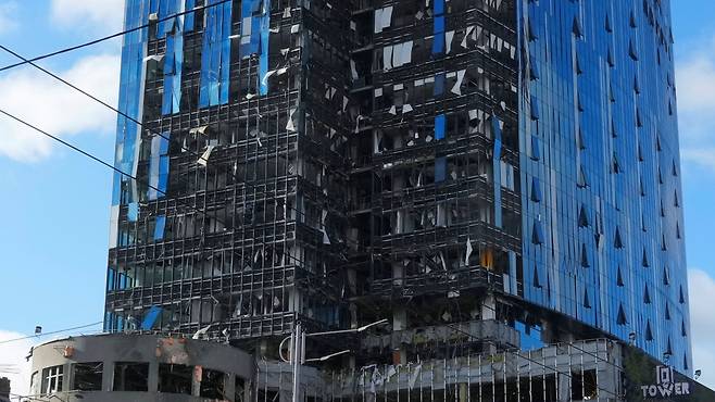 키이우 삼성 입주 건물, 러 미사일에 파손..인명피해 없어