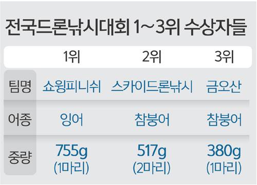 중국과 가나 출신 등 외국인으로 구성된 팀도 눈길을 끌었다. 대한응급드론협회 소속으로 참여한 가나 국적의 나나 아모아코(32)씨와 중국 국적 찐 룽 저(38)씨는 “대한응급드론협회 소속 회원들과 함께 한국을 대표하는 관광지에서 드론낚시를 할 수 있게 돼 기쁘다”며 “다음 대회에도 꼭 참가하겠다”고 했다.