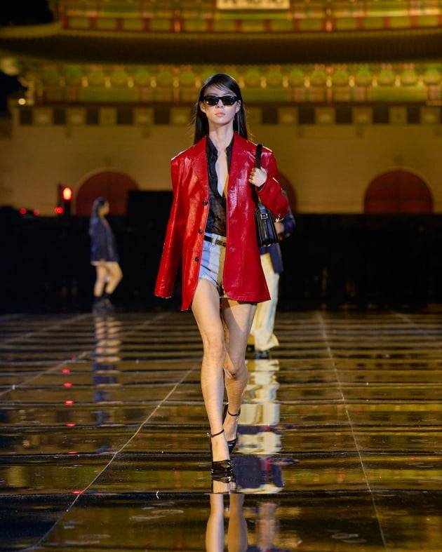 아미는 지난 11일 3년 만에 첫 오프라인으로 진행되는 서울패션위크에 참석해 광화문 육조거리에서 패션쇼를 열었다. 경복궁이 바로 보이는 자리에 검은색 타일로 런웨이를 설치했다. 관객들의 자리는 한국의 전통 옻칠 공예로 제작된 나무 스툴을 배치해 전통과 현대를 아우르는 모습으로 꾸며졌다.