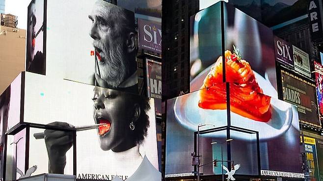 한국의 '김치' 영상이 미국 뉴욕 타임스퀘어 한복판에 등장했습니다.