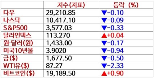 뉴욕증시, 9월 CPI 앞두고 눈치보기 속 하락 '모더나 8.3%↑'..유가 급락·비트코인 상승 [출근전 꼭 글로벌브리핑]