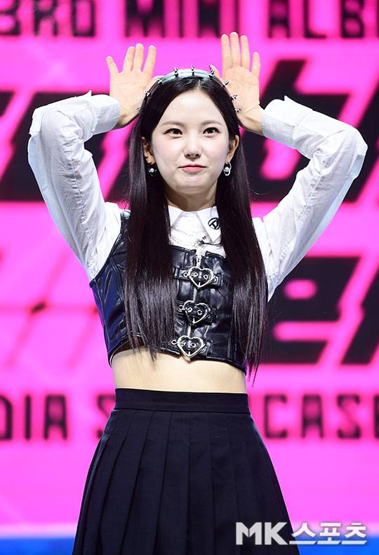 쇼케이스에 앞서 케플러 최유진이 포즈를 취하고 있다.