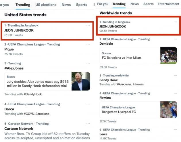 방탄소년단 정국 '셀카 영상'서 머리만 쓸어 넘겼을 뿐인데 '트위터' 전세계+미국 실트 1위